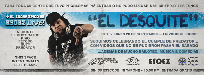 El Viernes 21 estamos en Voodoo again con el show de Improv mas cabron de todo PuertoRico! El original e indecente: Esoez Live!